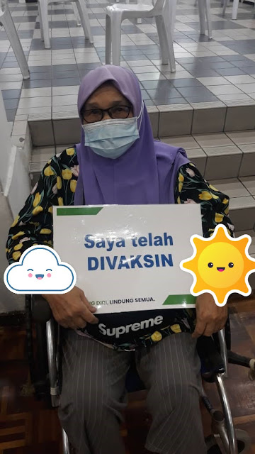 Suami aje yang bawak MIL ke tempat vaksin. Alhamdulillah dewannya dekat 10 minit aje dari rumah.